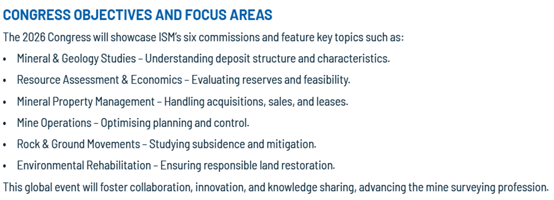 According to the decision of the 50th Presidium Meeting, the XIX International Congress for Mine Surveying will be held in Cape Town, South Africa in 22-25 September 2026. The main organizer is the Institude of Mine Surveyors of Southern Africa.