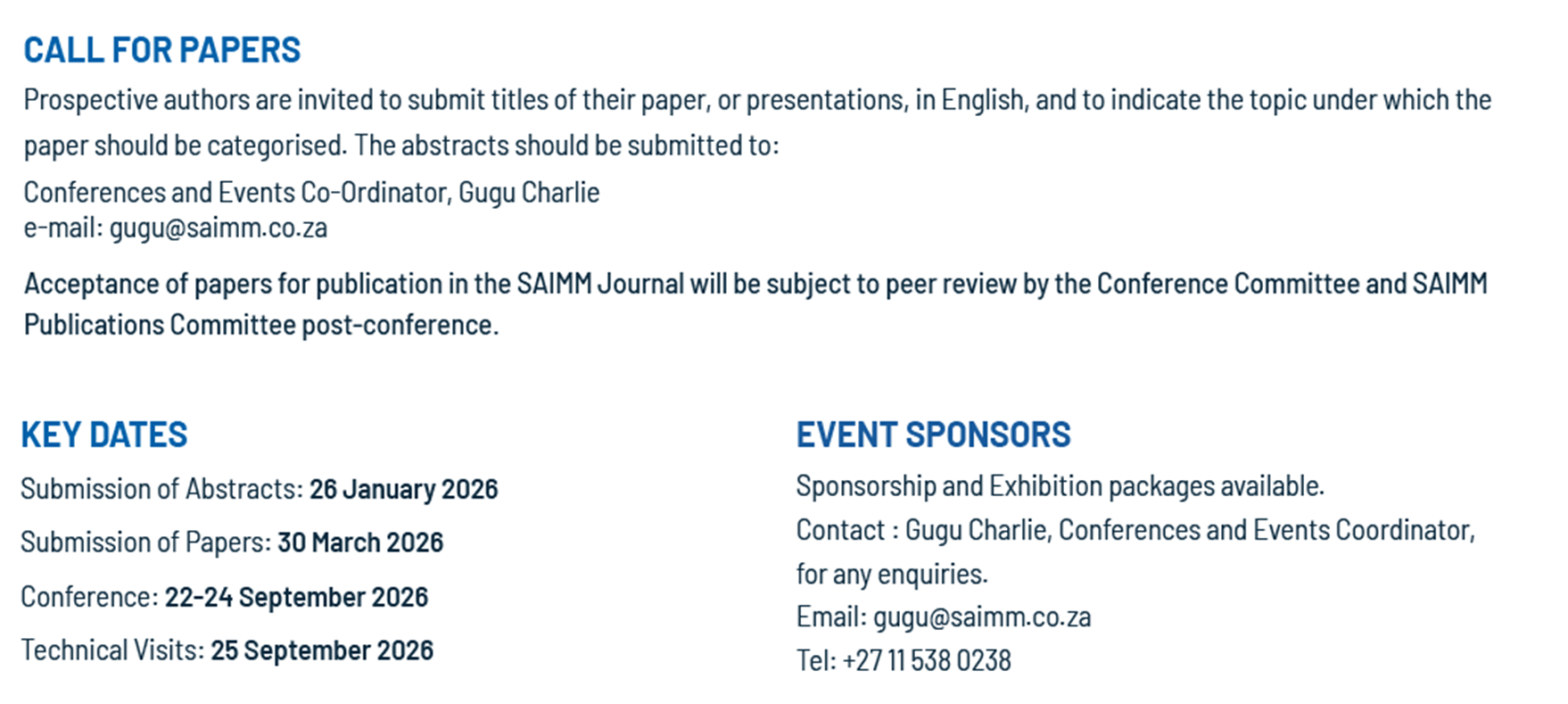 Hendrik Grobler – President of the International Society for Mine Surveying, tel.: +27 82 442 0549, e-mail: hgrobler@uj.ac.za